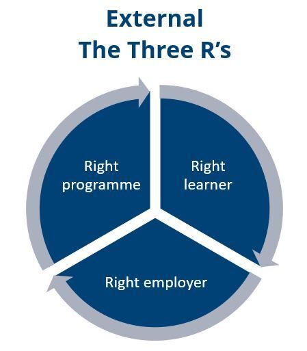 The three Rs relate to working with your external stakeholders, your employers and apprentices and are loosely grouped around business development. Firstly, have you considered if an apprenticeship is the right programme? Apprenticeships are not the only training or learning solution. Might your apprentice be more suited to undertake a commercial course in their own time? Is your apprentice on the right level of course?